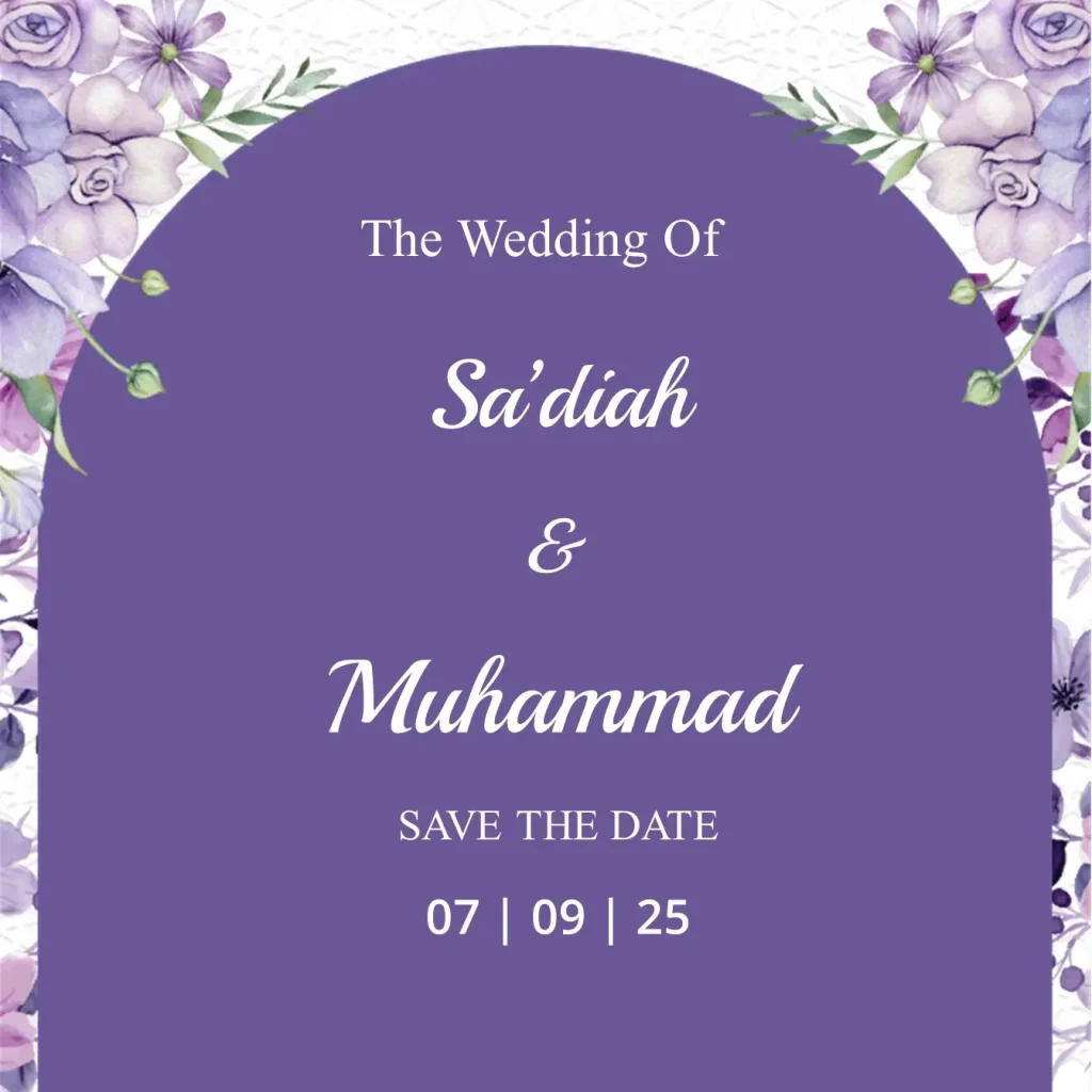 The Wedding of Sa’diah & Muhammad Kepada Yth: Buka Undangan The Wedding of Sa’diah & Muhammad 07 . 09 . 2025 “Dan di antara tanda-tanda (kebesaran)-Nya ialah Dia menciptakan pasangan-pasangan untukmu dari jenismu sendiri, agar kamu cenderung dan merasa tenteram kepadanya, dan Dia menjadikan di antaramu rasa kasih dan sayang. Sungguh, pada yang demikian itu […]