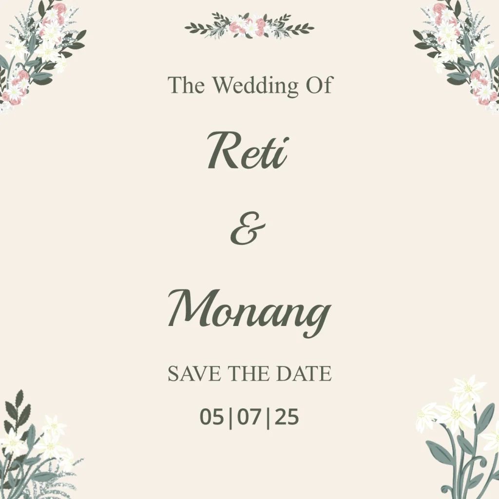 Walimatul ‘Urs Reti & Monang Sabtu, 05 Juli 2025 Kepada Yth: Buka Undangan بِسْمِ اللَّهِ الرَّحْمَنِ الرَّحِيم Assalamu`alaikum Warahmatullahi Wabarakatuh Maha Suci Allah yang telah menciptakan makhluk-Nya berpasang-pasangan. Ya Allah semoga ridho-Mu tercurah mengiringi pernikahan kami: Reti Reti Sukriani Putri Ketuju dari Bapak Abu Salim & Ibu Asmarani & Monang Parmonangan Sinaga […]