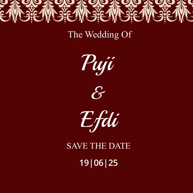 The Wedding Of Puji & Efdi Kepada Yth : Ditempat Buka Undangan The Wedding Of Puji & Efdi Kami akan menikah, kami ingin anda menjadi bagian dari hari bahagia kami 00Hari 00Jam 00Menit 00Detik Kamis, 19 Juni 2025 Simpan tanggal Ar-Rum 21 وَمِنْ آيَاتِهِ أَنْ خَلَقَ لَكُمْ مِنْ أَنْفُسِكُمْ أَزْوَاجًا لِتَسْكُنُوا إِلَيْهَا وَجَعَلَ بَيْنَكُمْ مَوَدَّةً […]